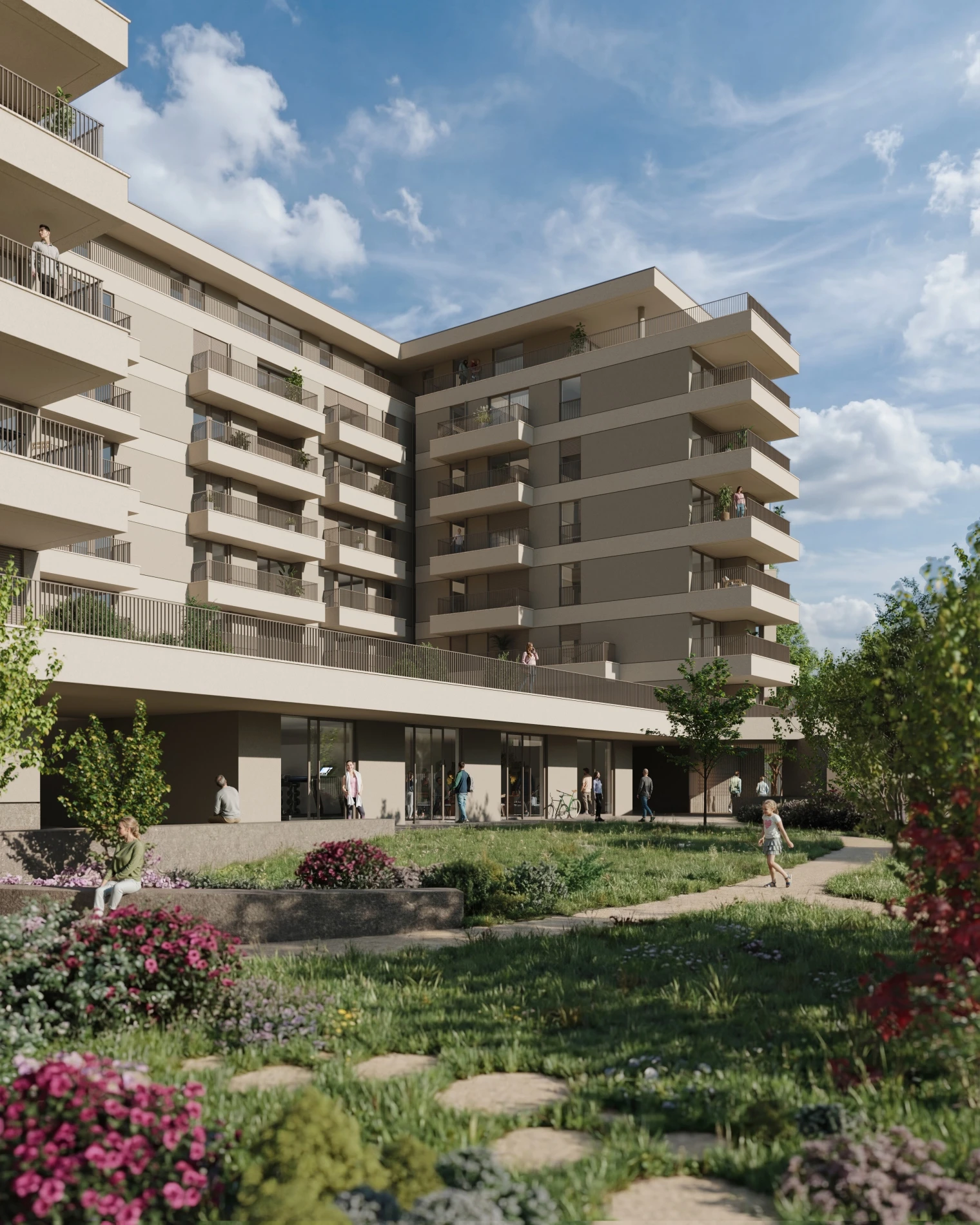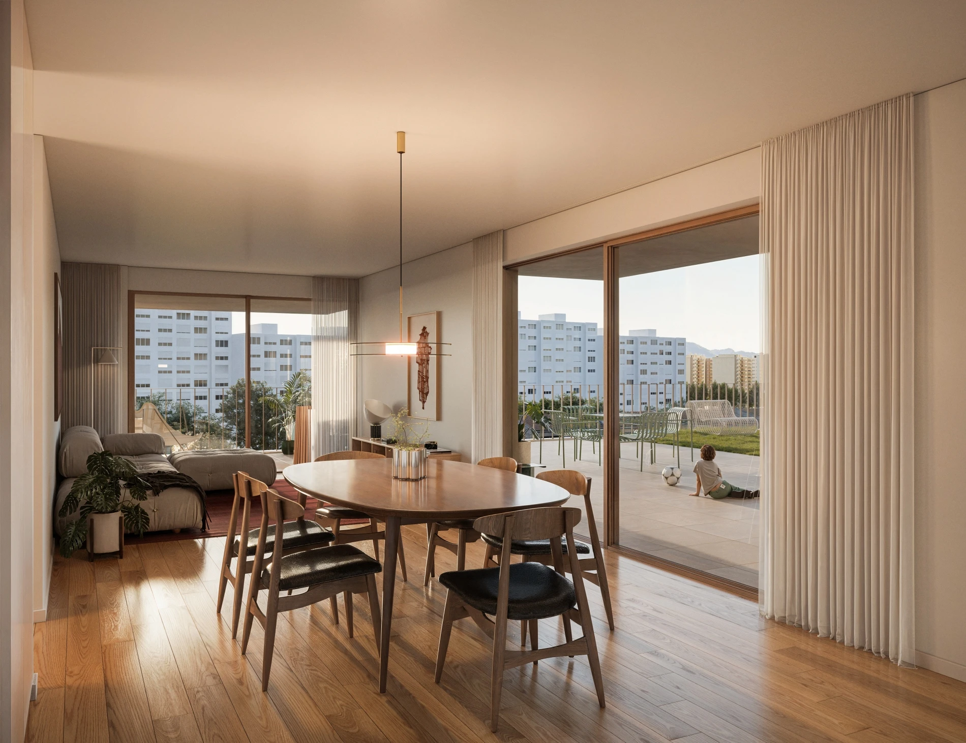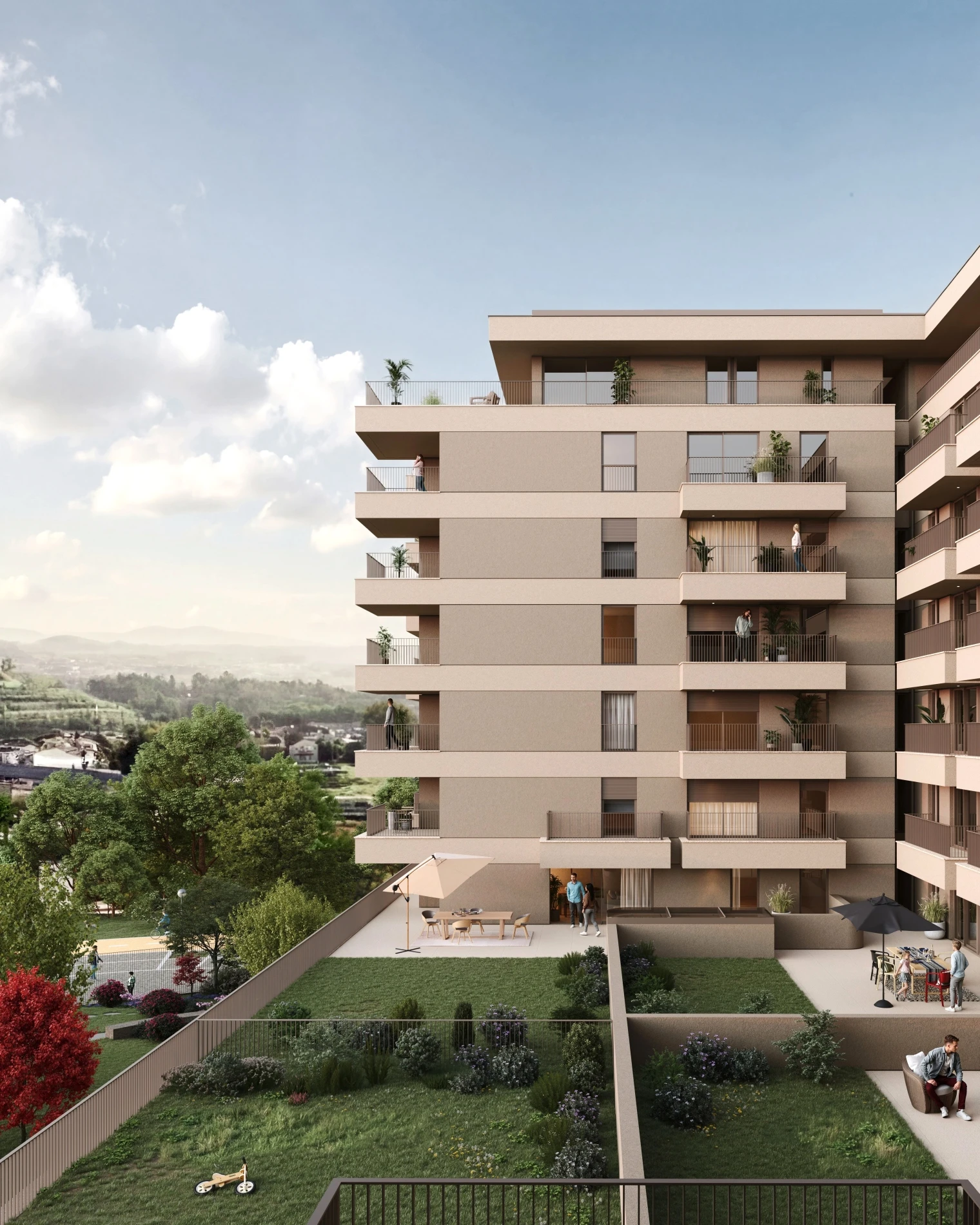 At the heart of Pleno Jardim lies its private communal garden, with around 700 m², which extends the living space from indoors to outdoors. A garden with large green areas that create a safe and inviting environment, where families meet and connect and days take on a different pace.